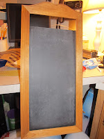 Remember how much I love chalkboard paint? Well, I got it back out and made a menu board. I was tired of calling my hubby and asking what he wanted for supper and getting one of two answers: 1) ah, I don't know, it don't matter (and then whatever I cook that wasn't what he wanted) or 2) I'm not really hungry, I probably won't eat. (Then when he gets in he's starving and wants some big supper) So I told him we would start working out a menu for the coming week, I would buy groceries accordingly and there would be no changes. He agreed and I started looking for something I could use as a menu board. Also remember how I'm a boarder line hoarder? Yeah, so I found the perfect thing that Brad has had since 2003. Don't judge me.